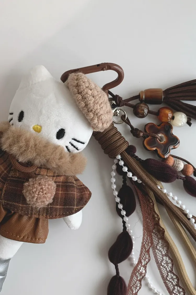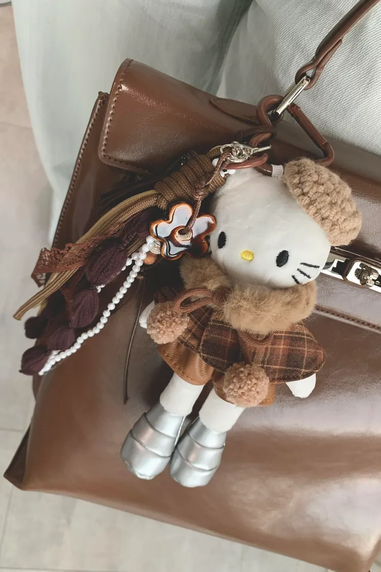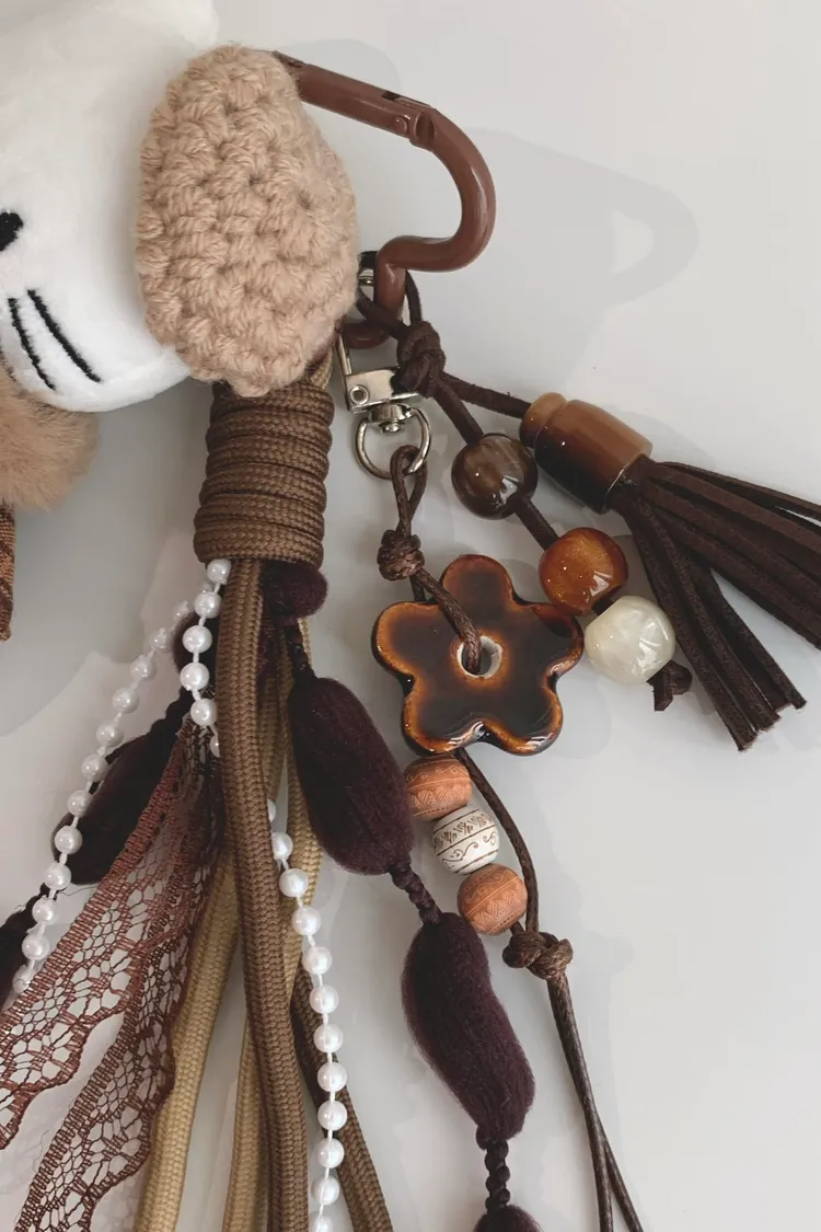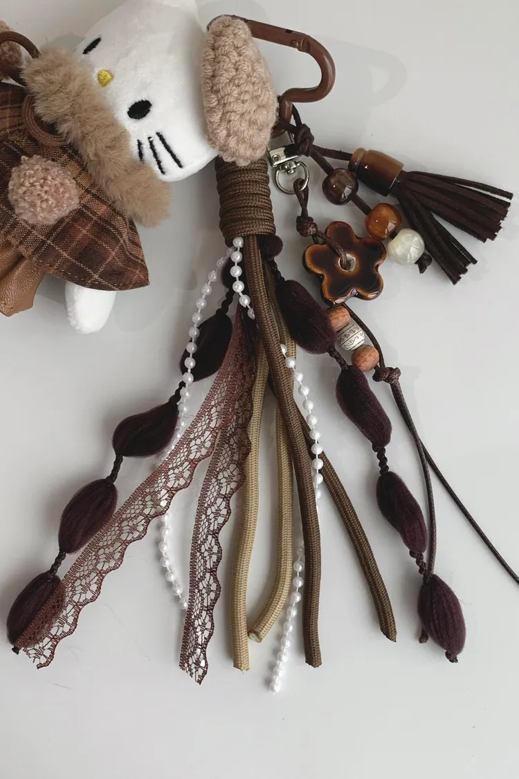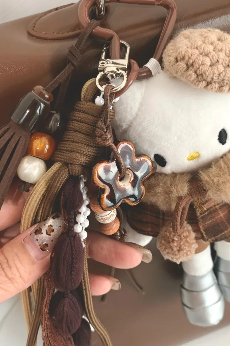 還搭配了手工感流蘇、珠飾與小花吊墜,層次豐富卻不雜亂,掛在包包上立刻變成整體造型的亮點