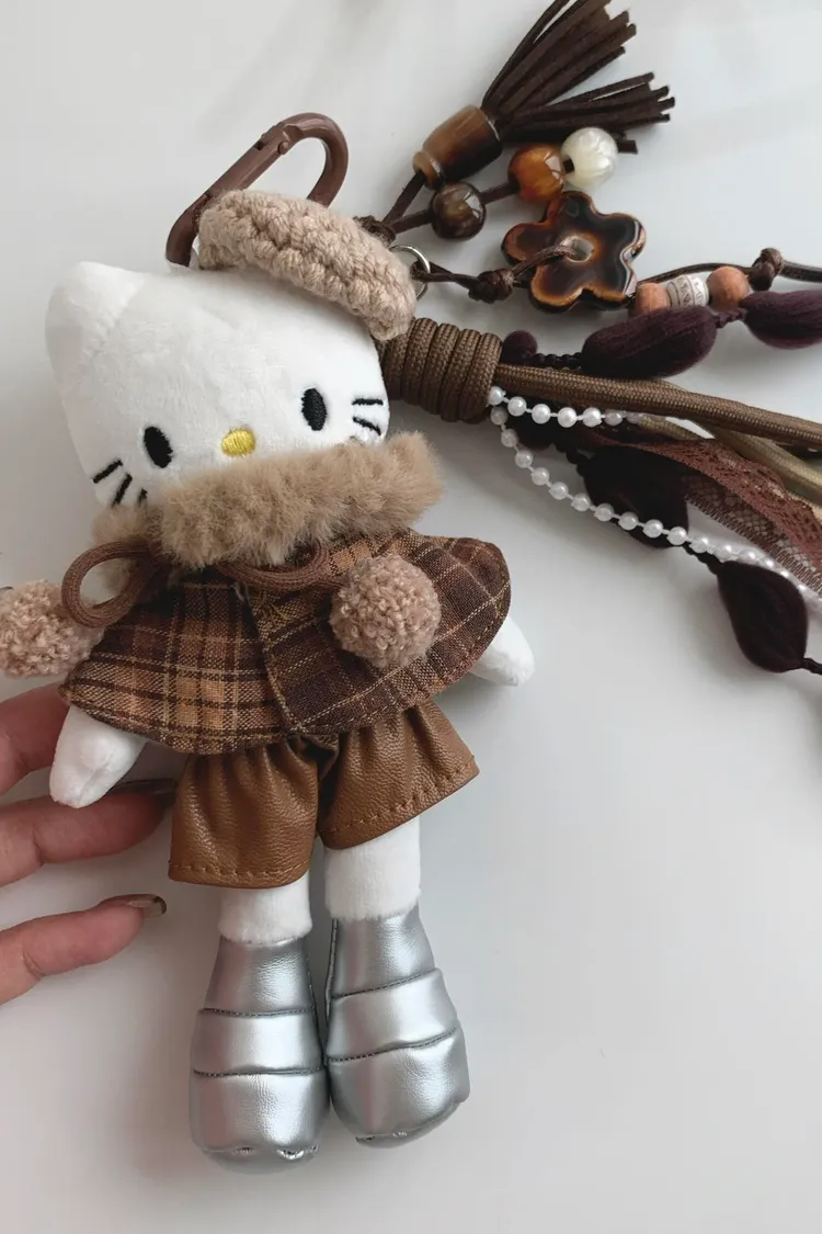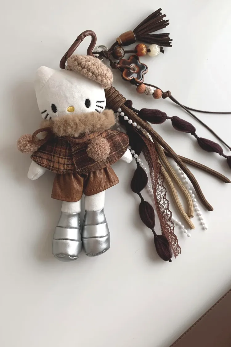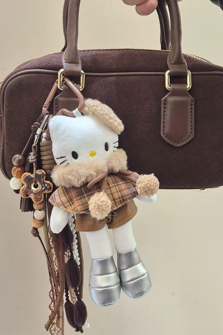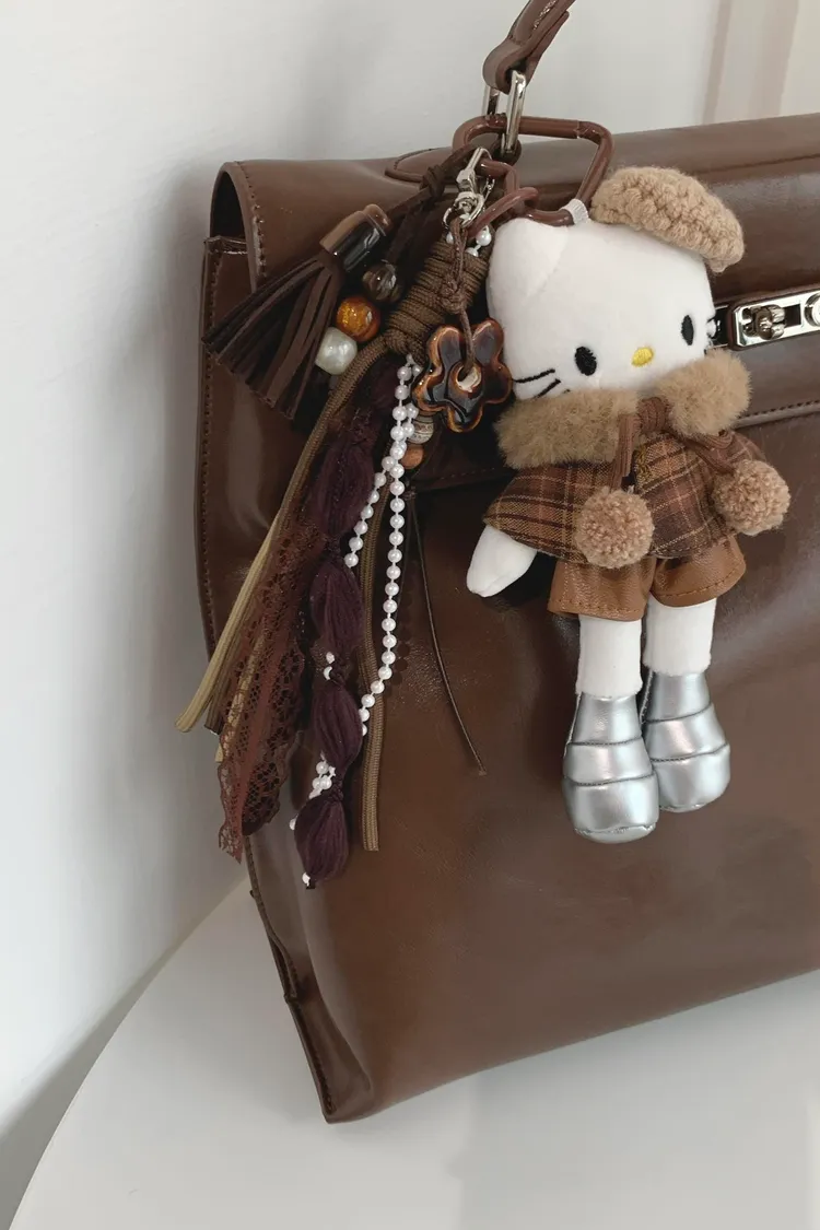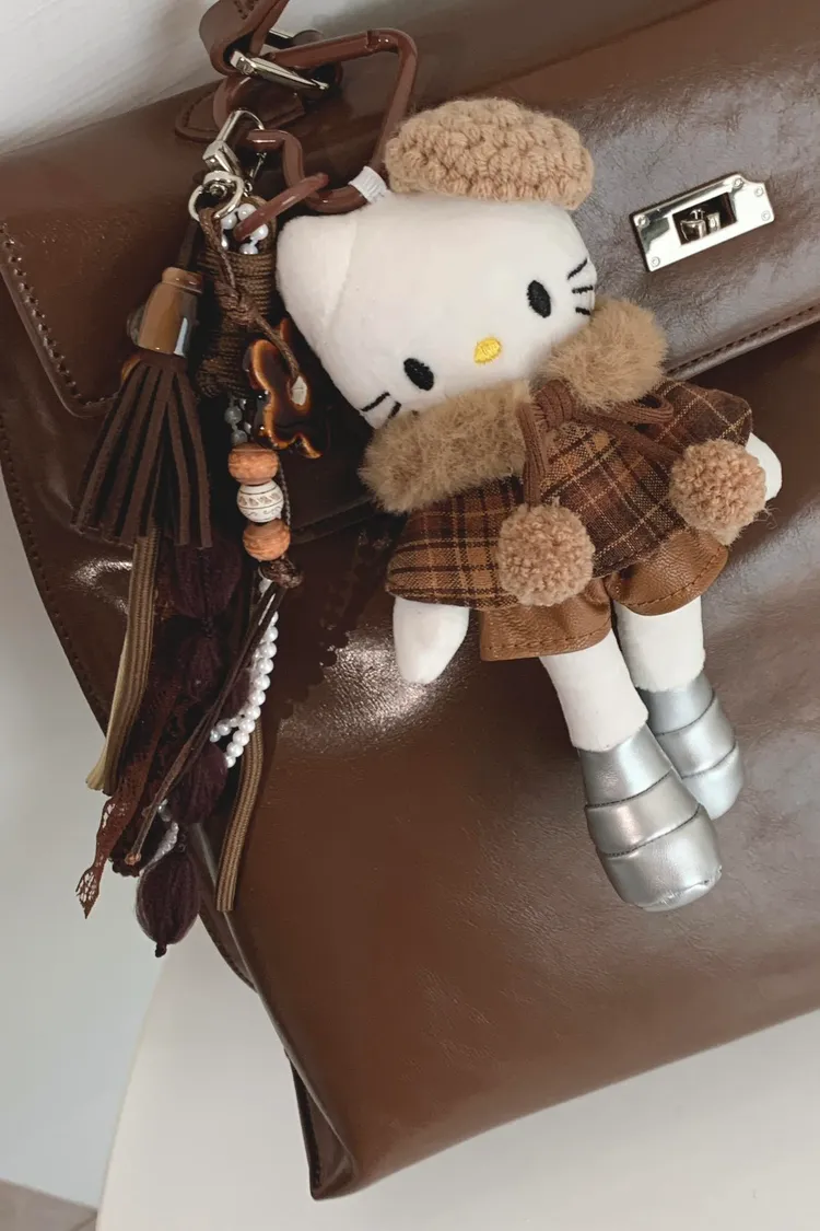還搭配了手工感流蘇、珠飾與小花吊墜,層次豐富卻不雜亂,掛在包包上立刻變成整體造型的亮點