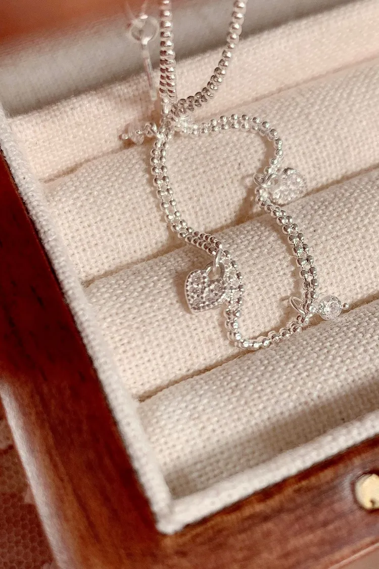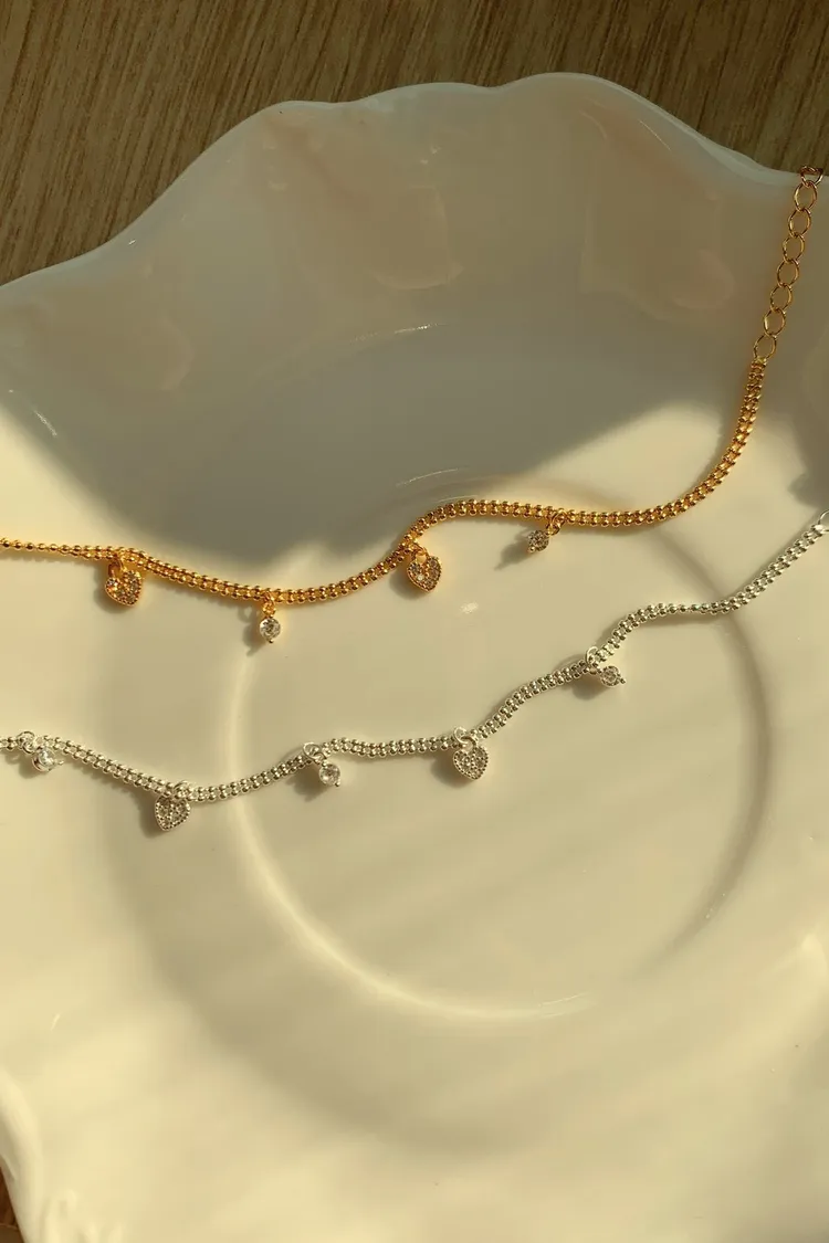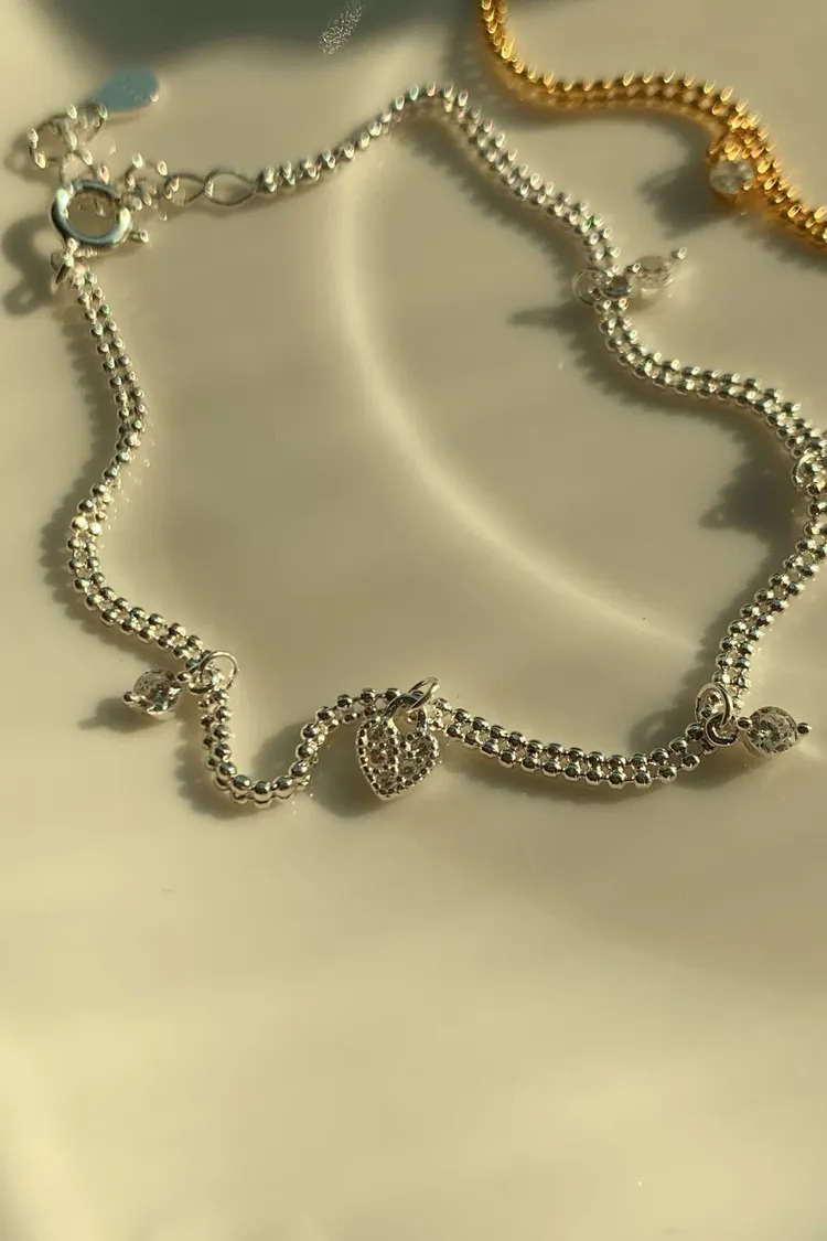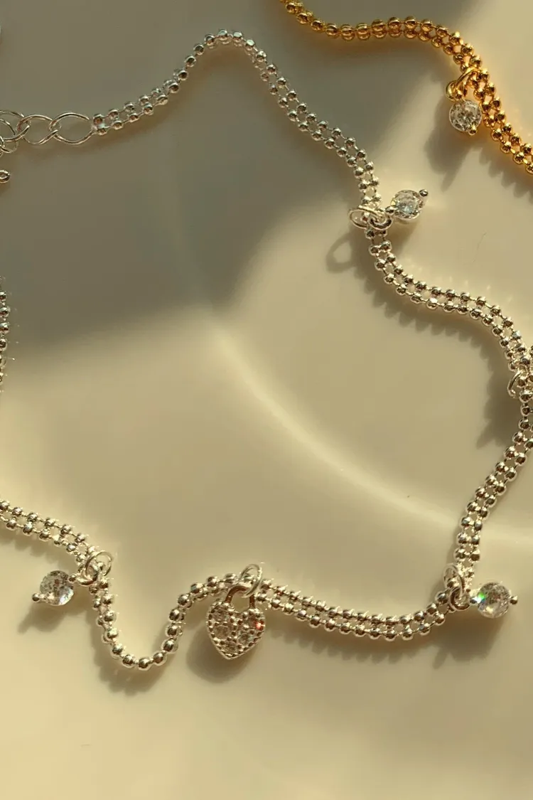 細細的圓珠鍊,戴起來很舒適、不會卡卡,沒有負擔。垂墜的小愛心加上小鑽,走動時會微微閃光!!