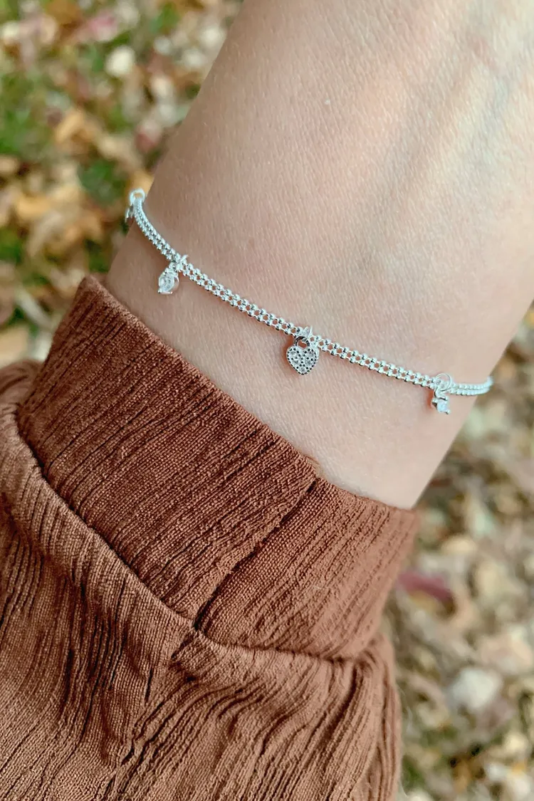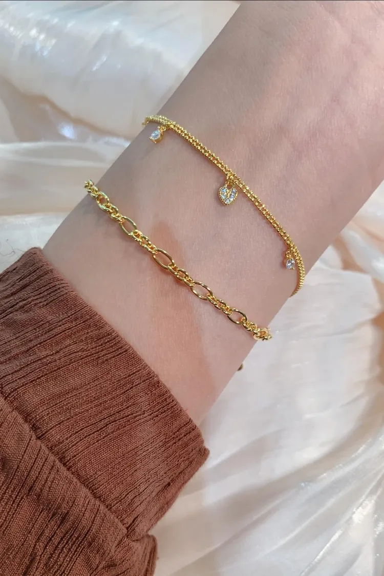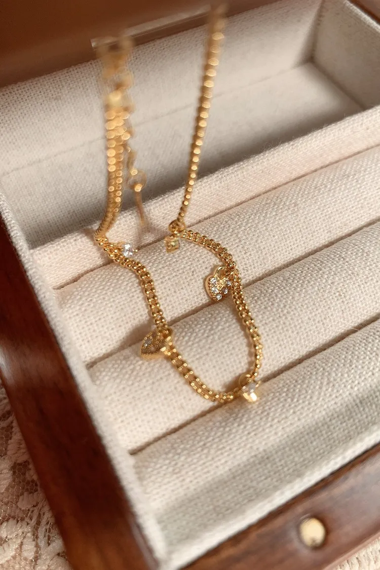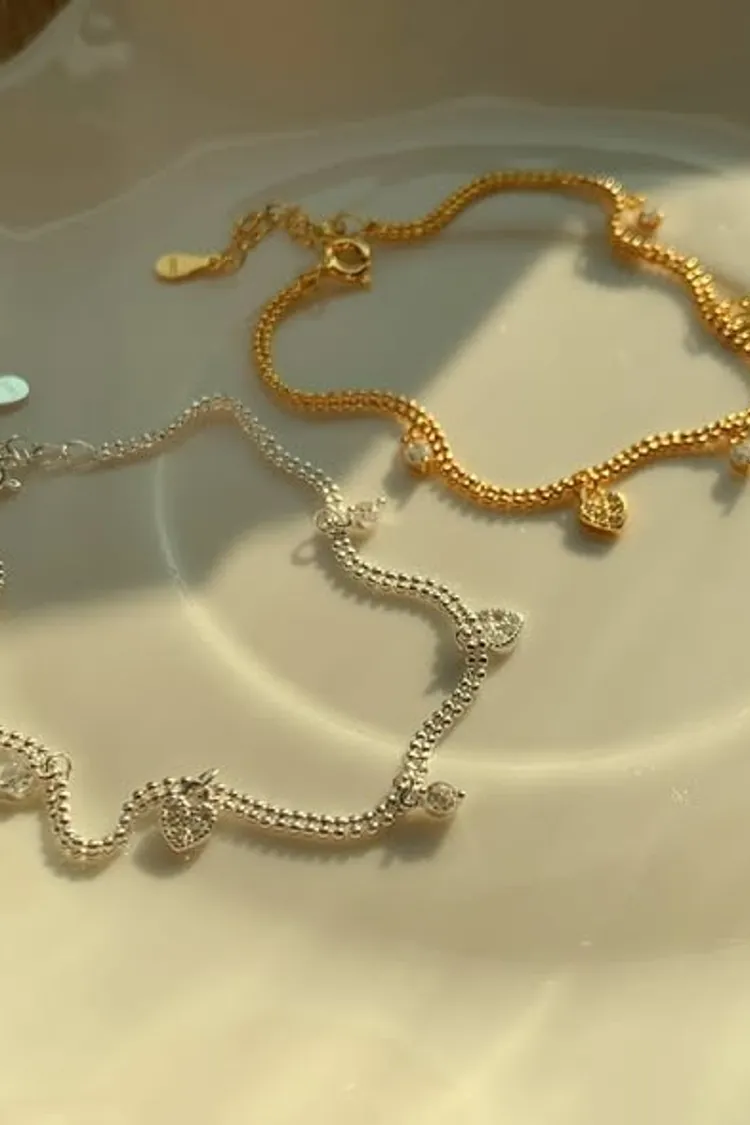 細細的圓珠鍊,戴起來很舒適、不會卡卡,沒有負擔。垂墜的小愛心加上小鑽,走動時會微微閃光!!