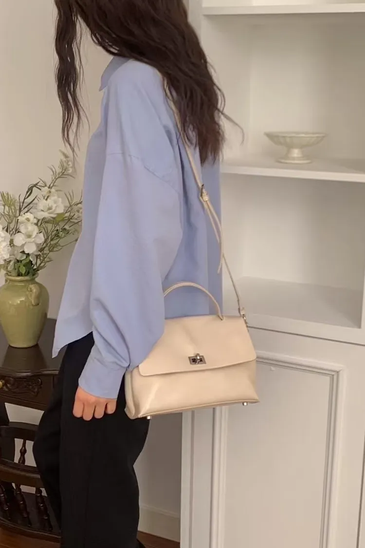 這款雙扣牛皮翻蓋包真的超有質感‼️整體設計簡約又大方
