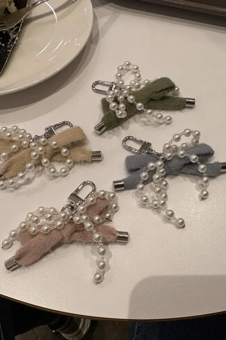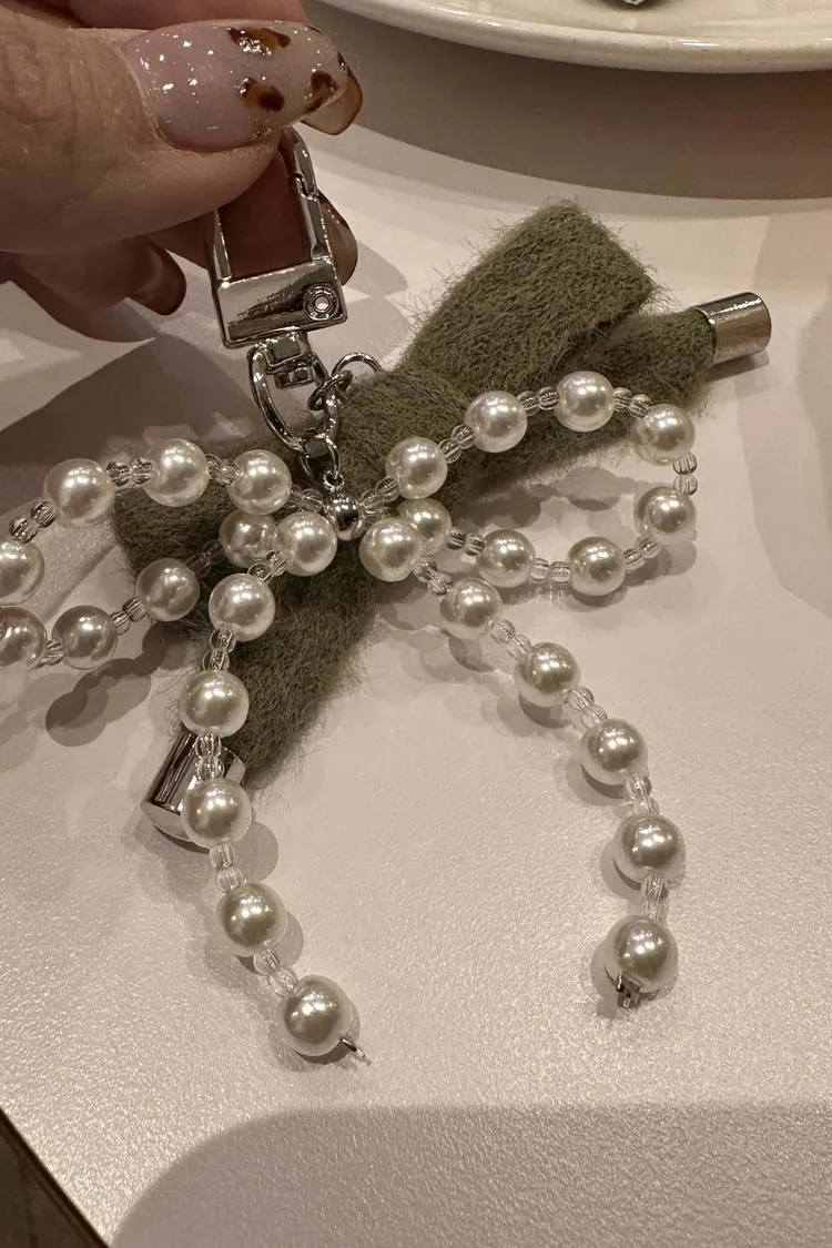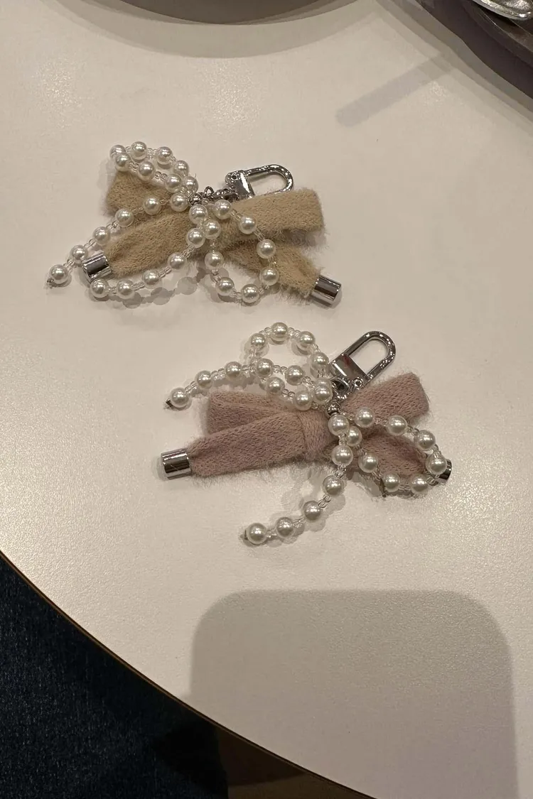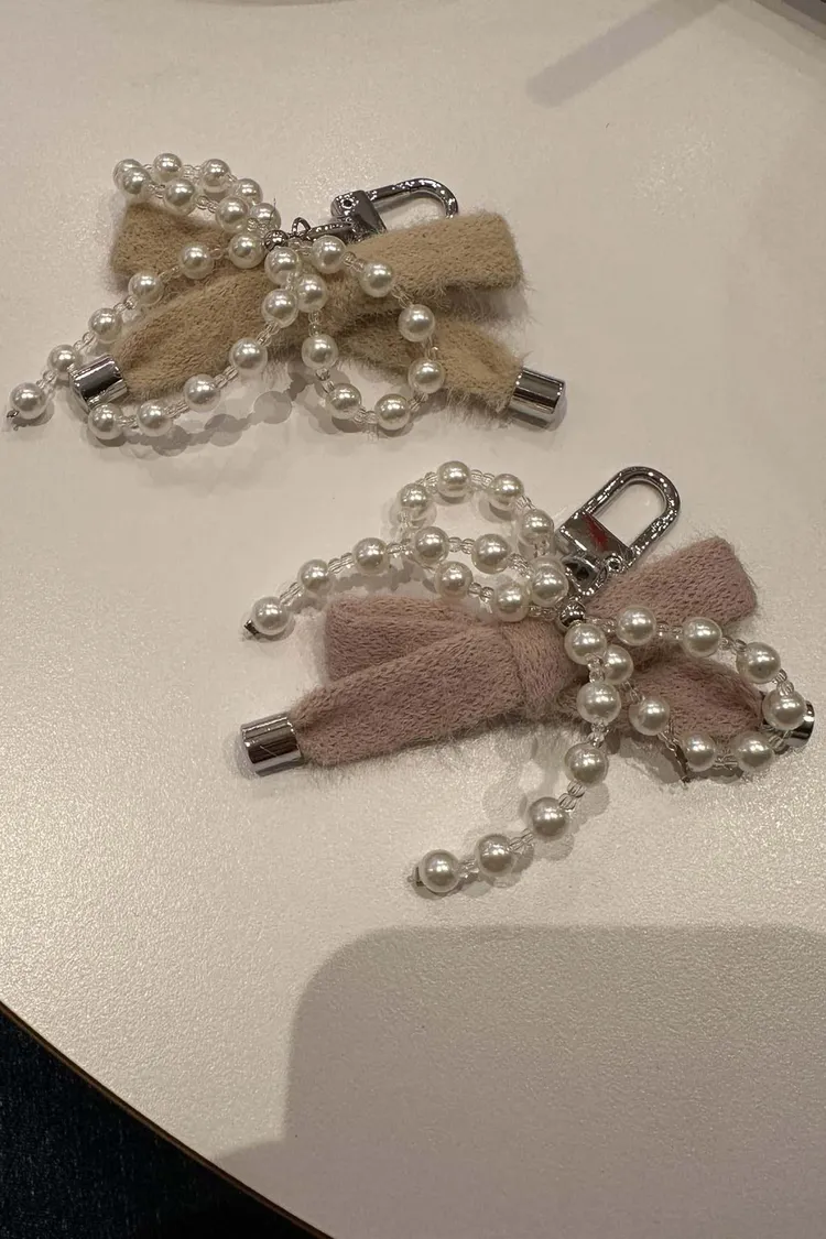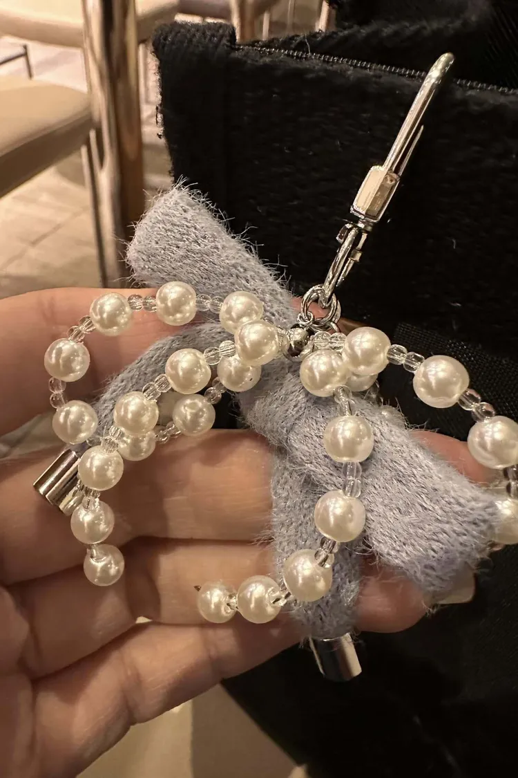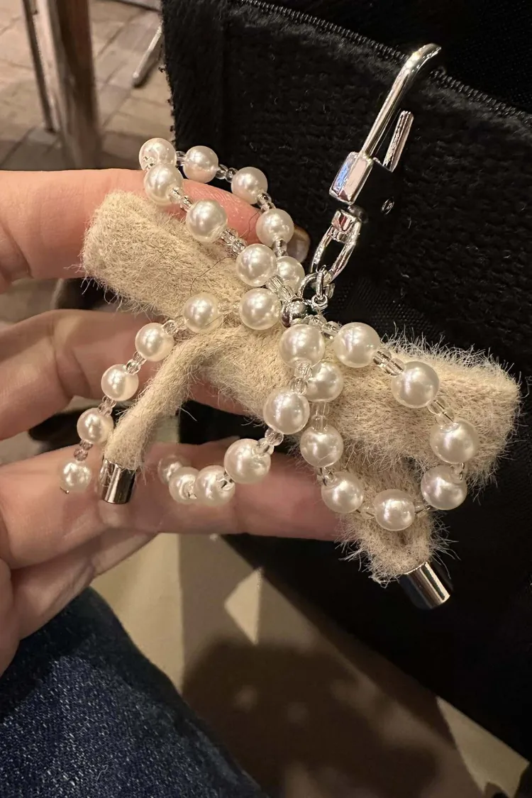 這款毛茸茸的蝴蝶結珍珠掛飾
