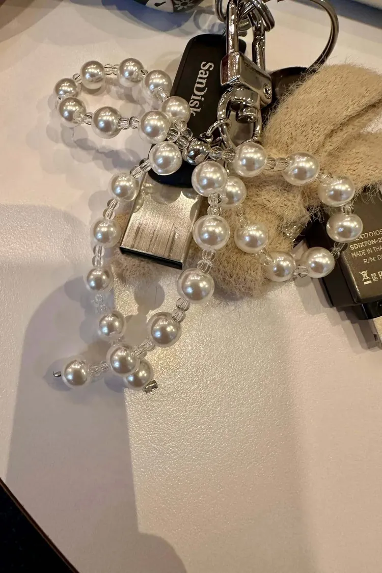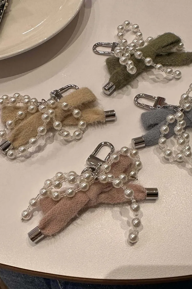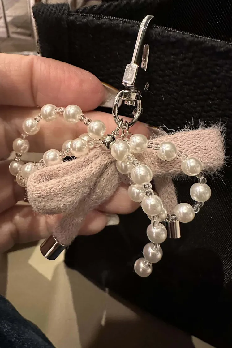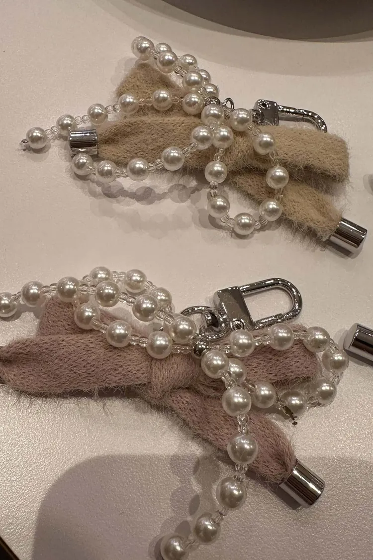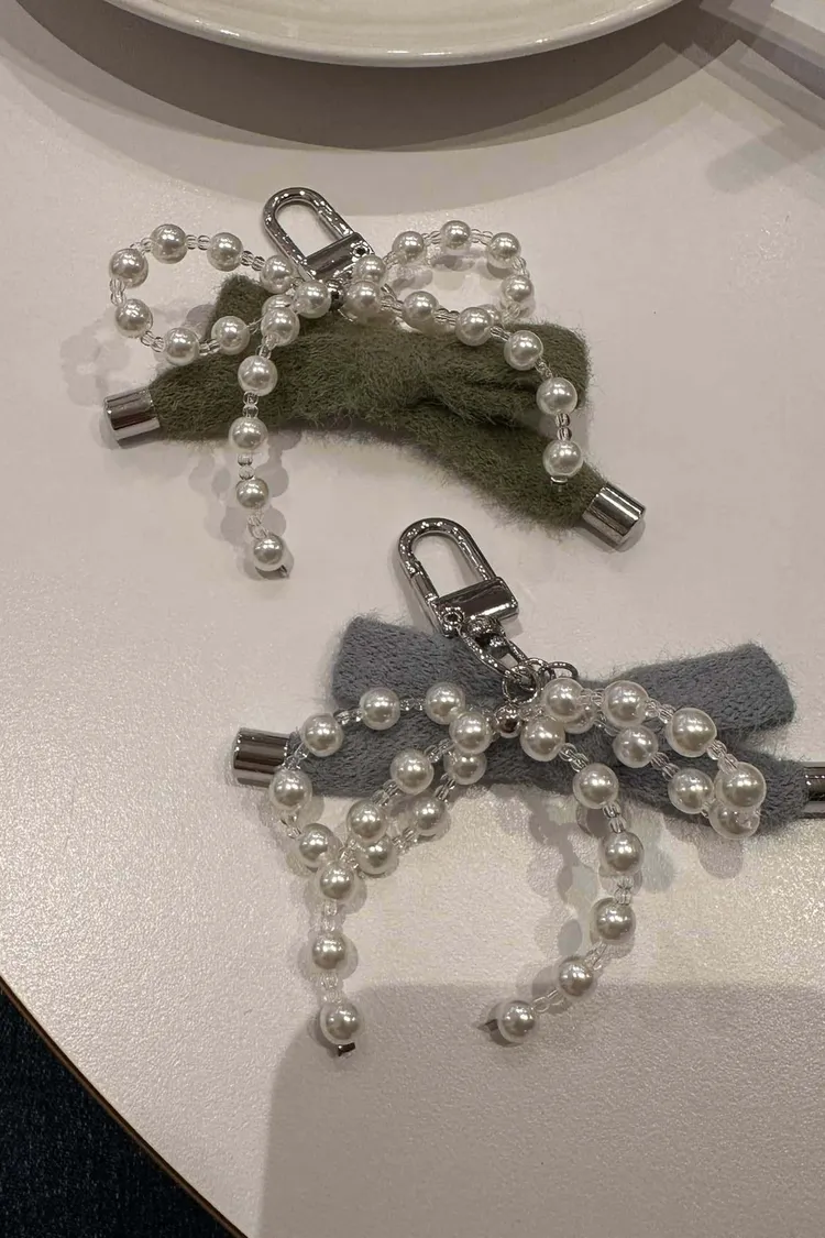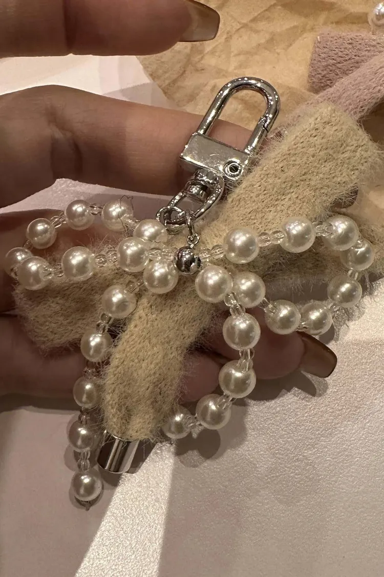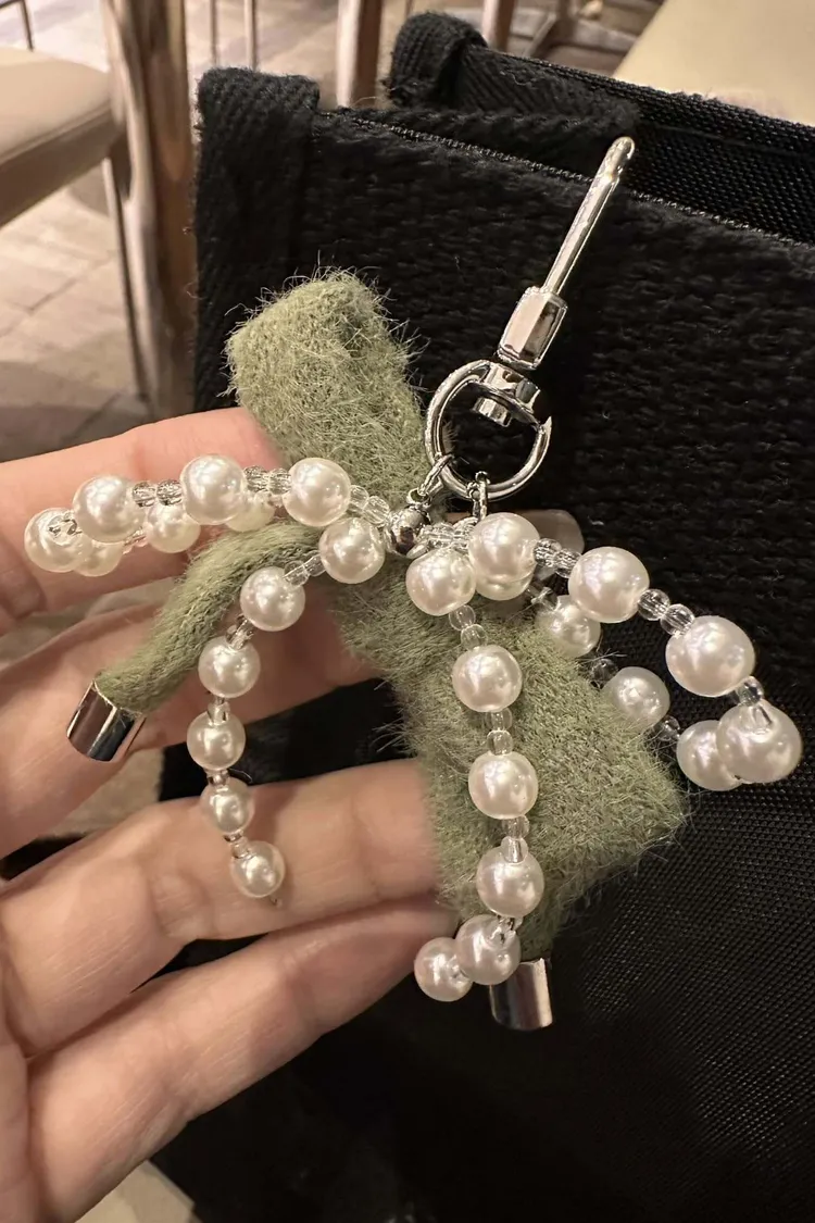 這款毛茸茸的蝴蝶結珍珠掛飾