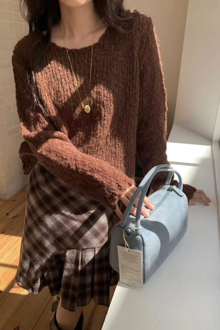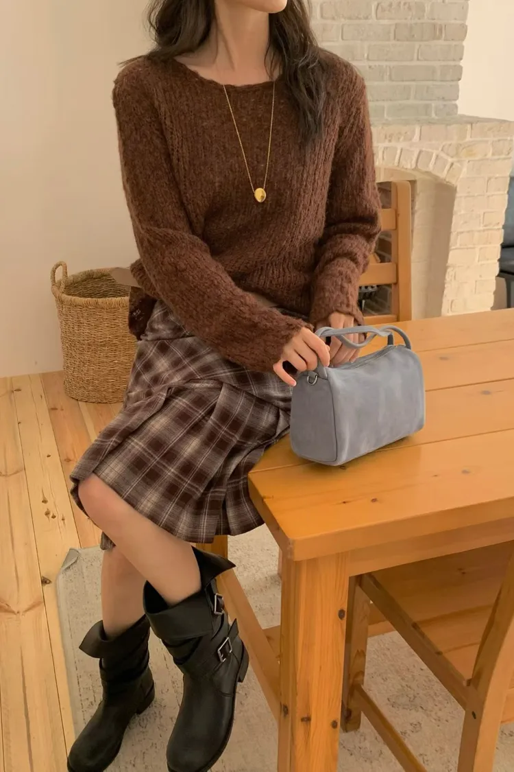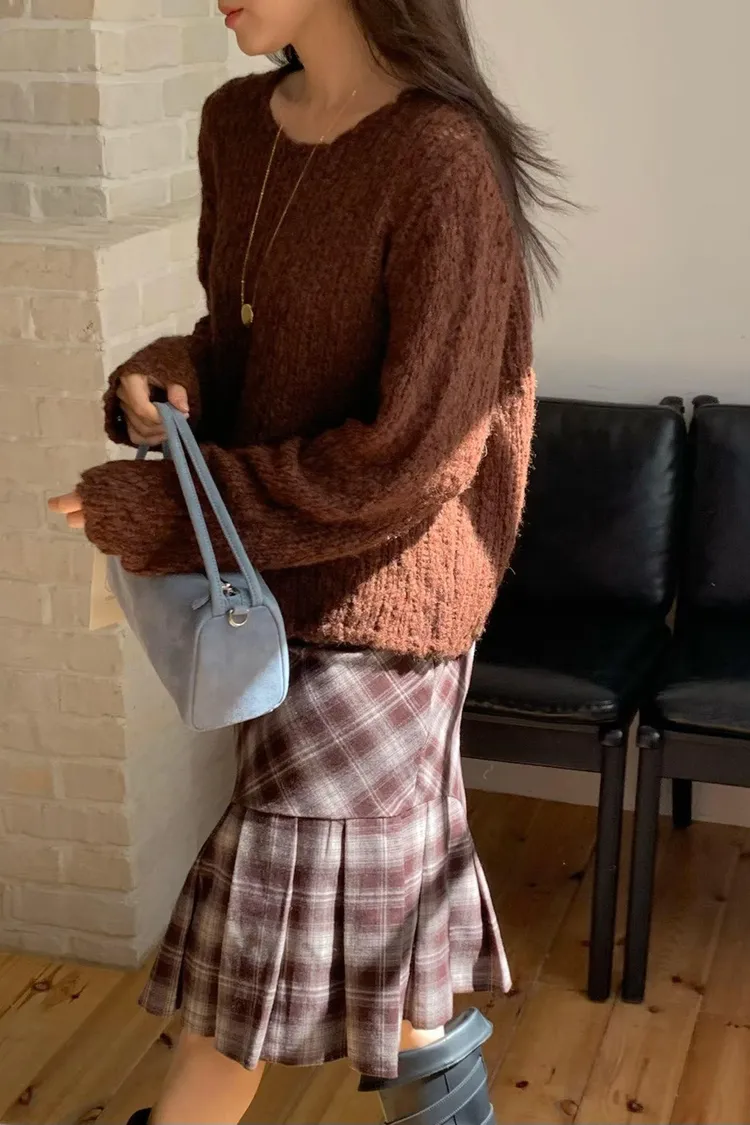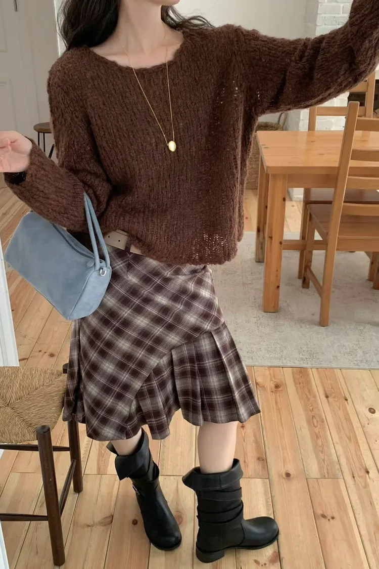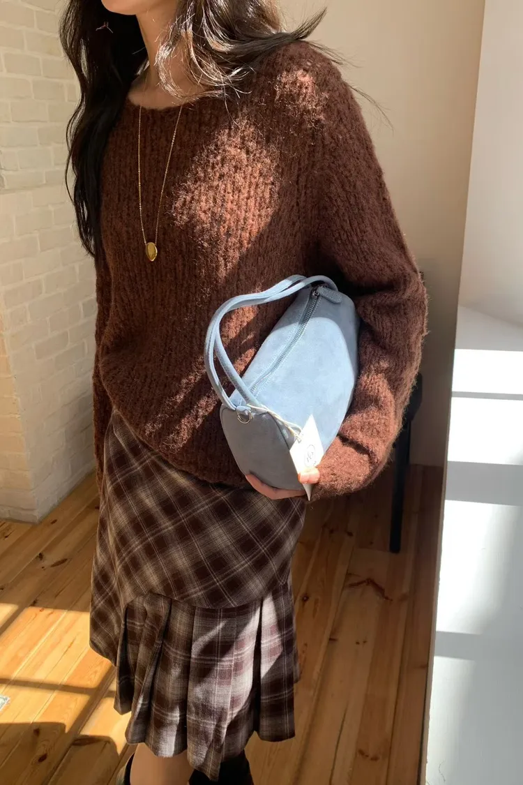 連毛衣咖色長裙竟然也毫無違和感…