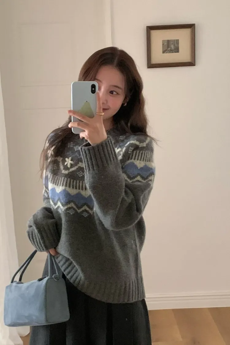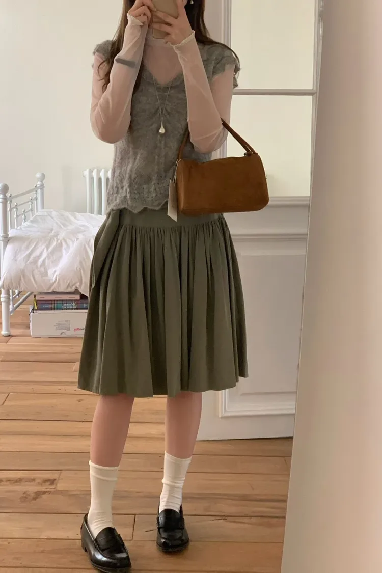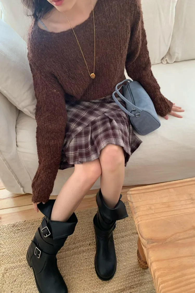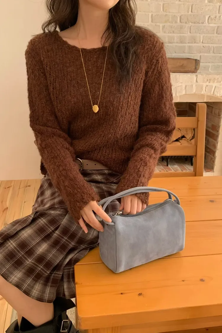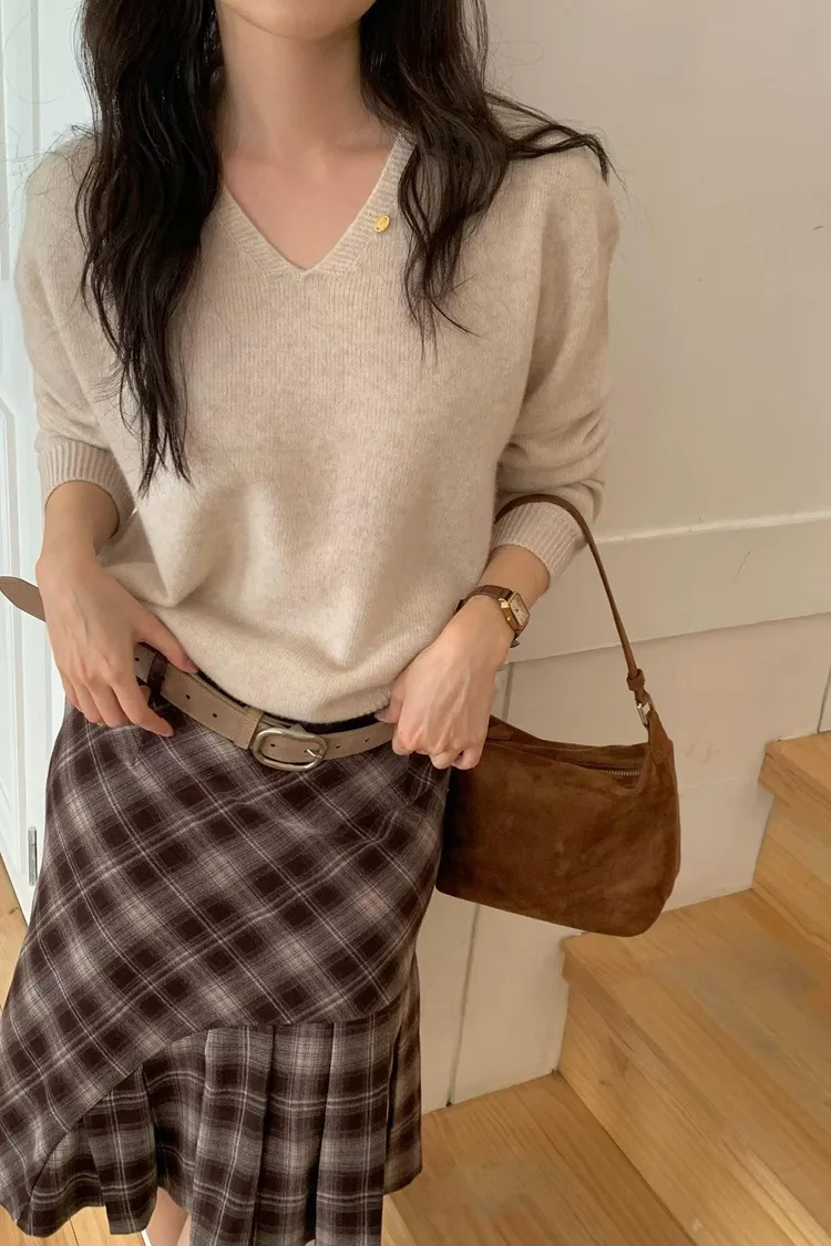 連毛衣咖色長裙竟然也毫無違和感…