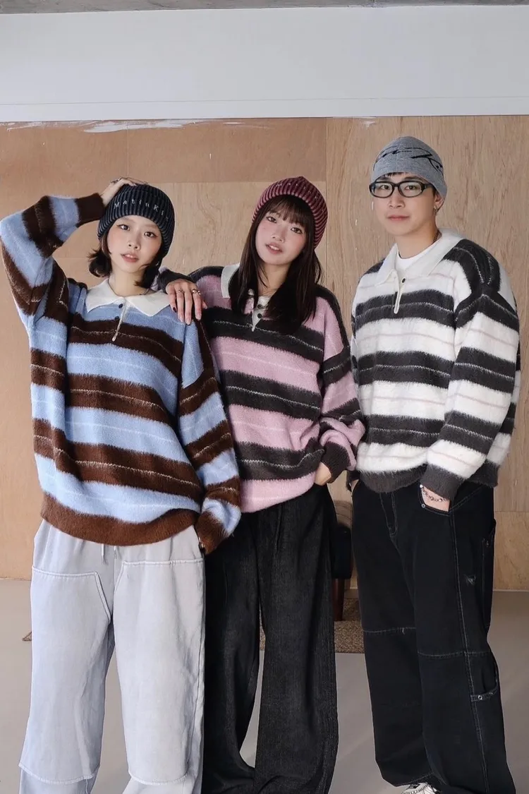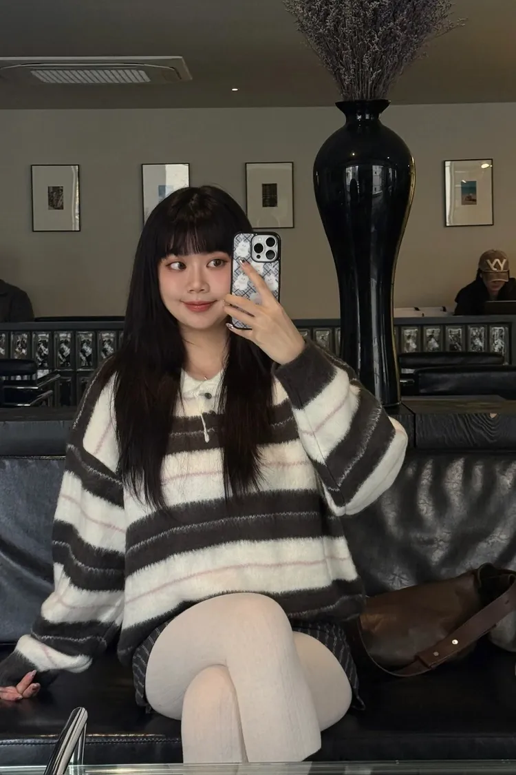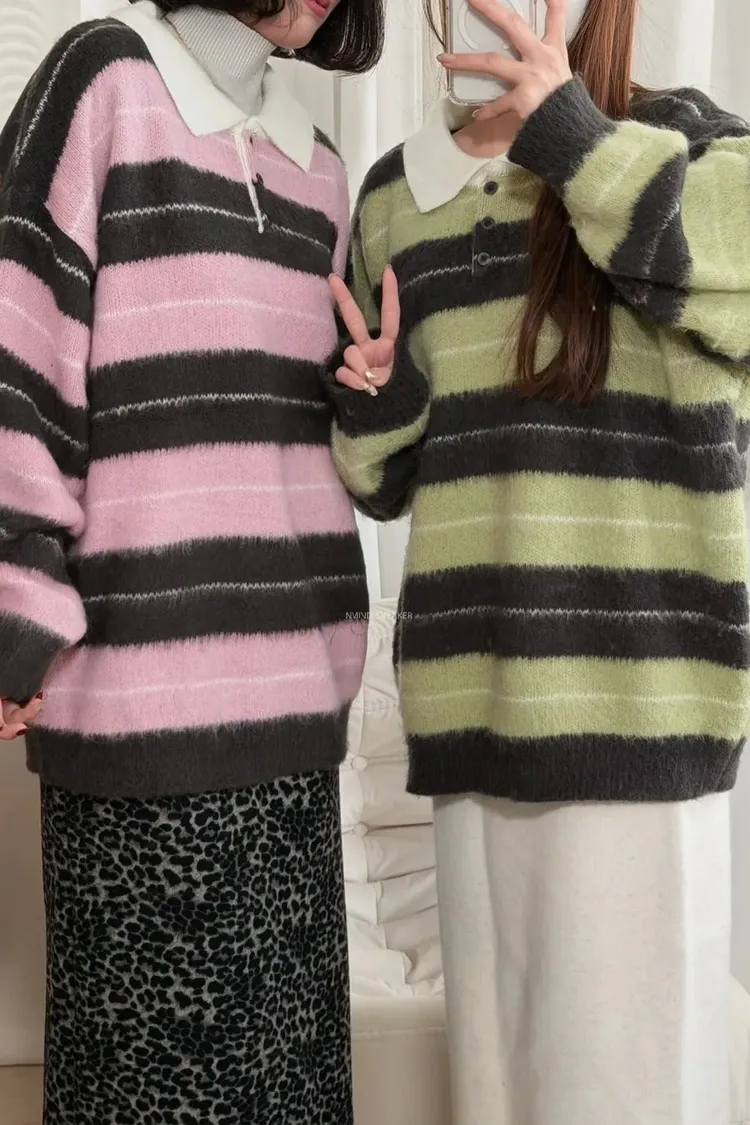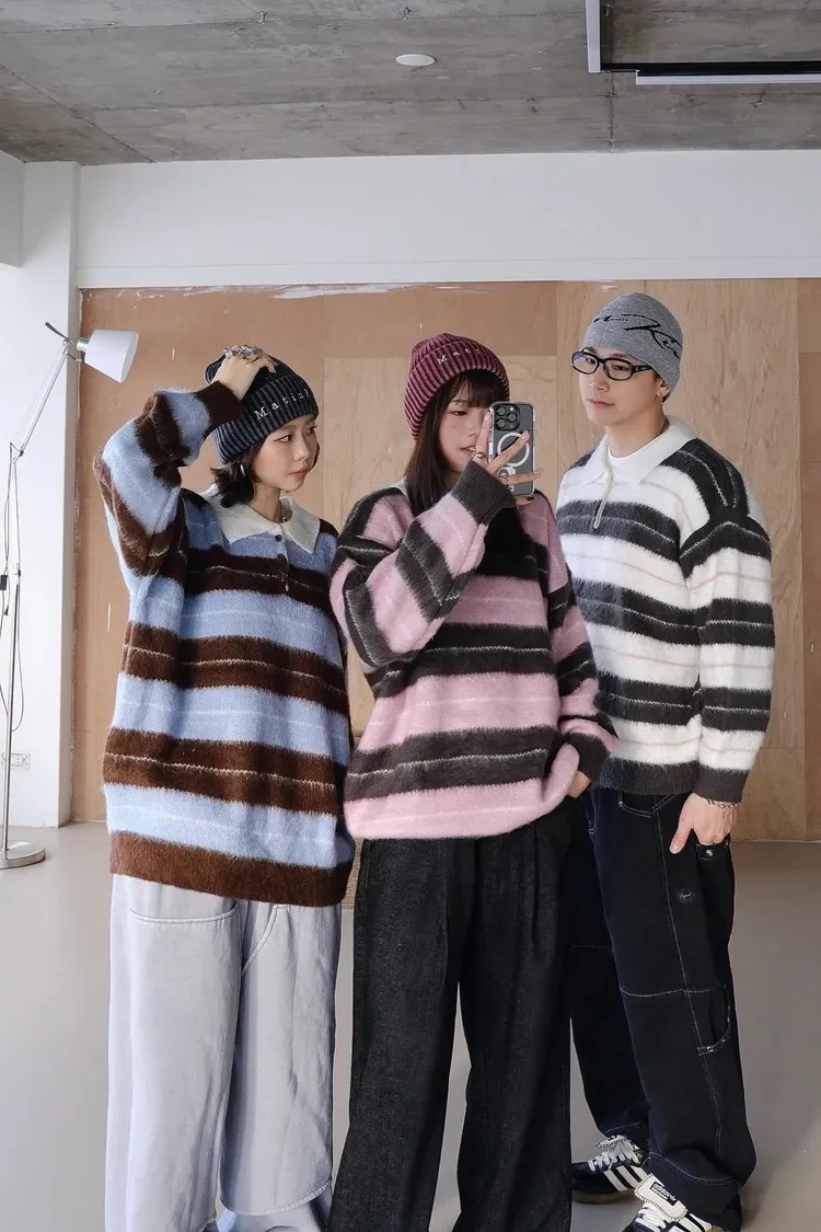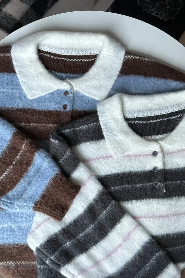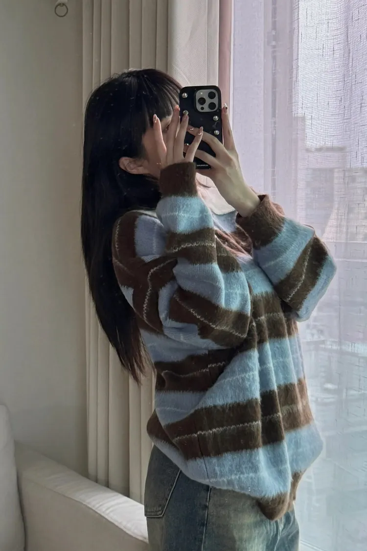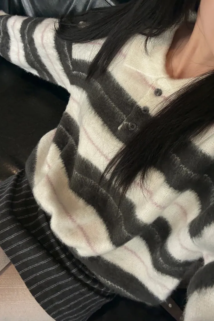 韓國賣爆的超柔毛毛條紋上衣