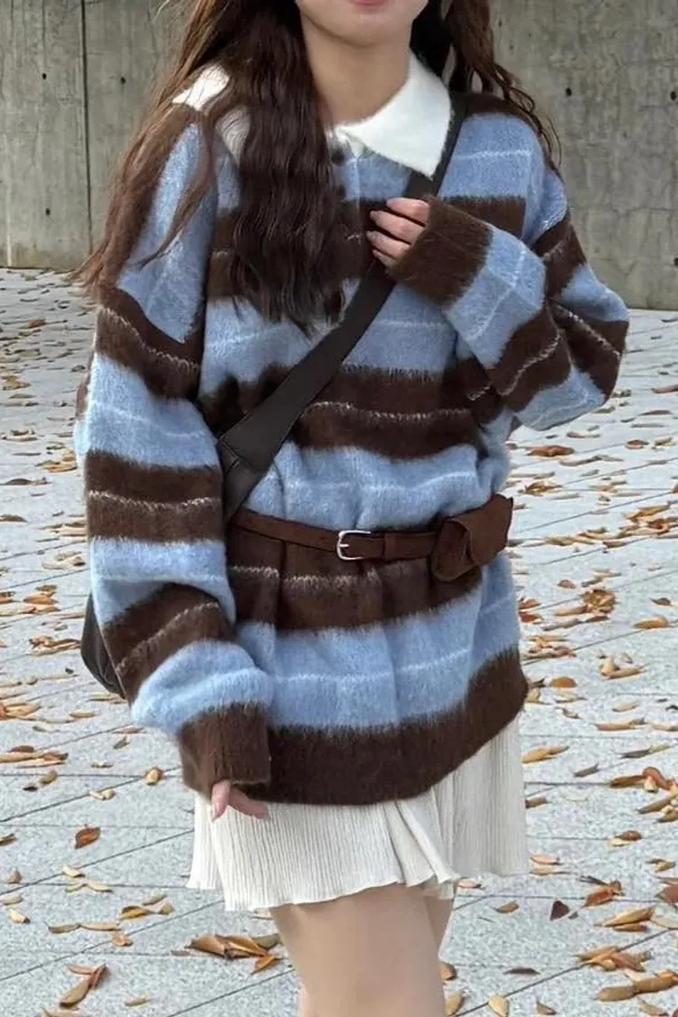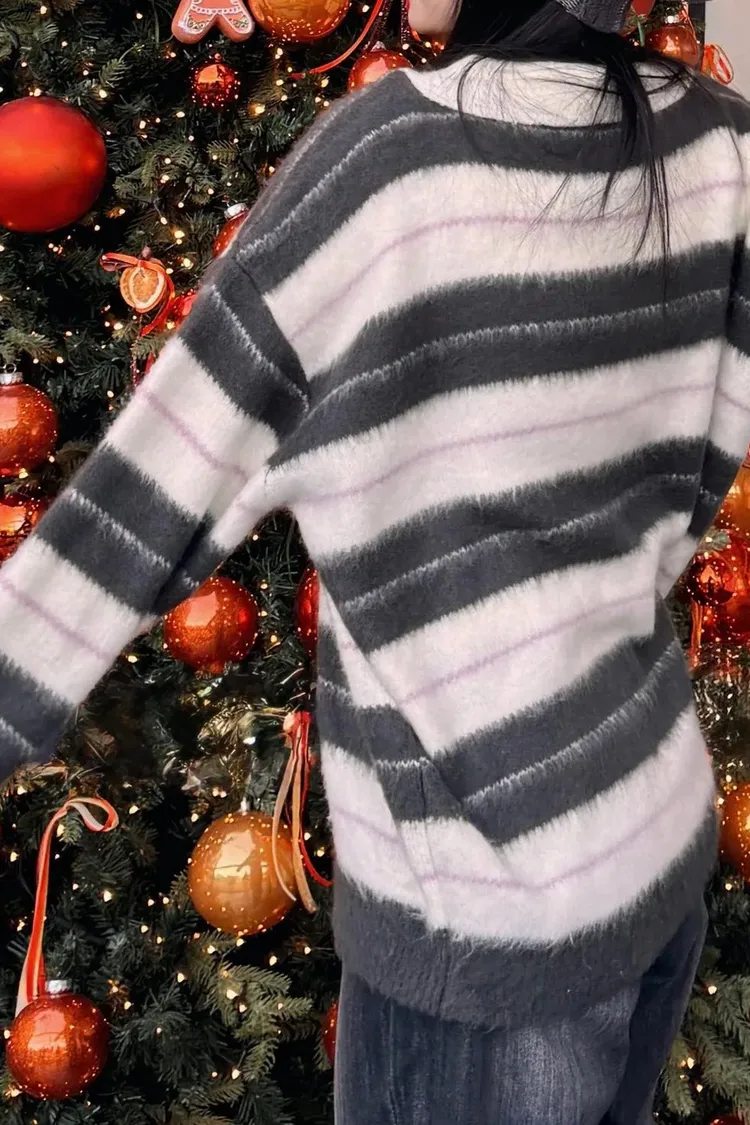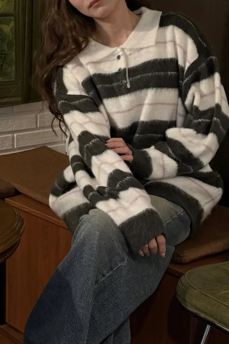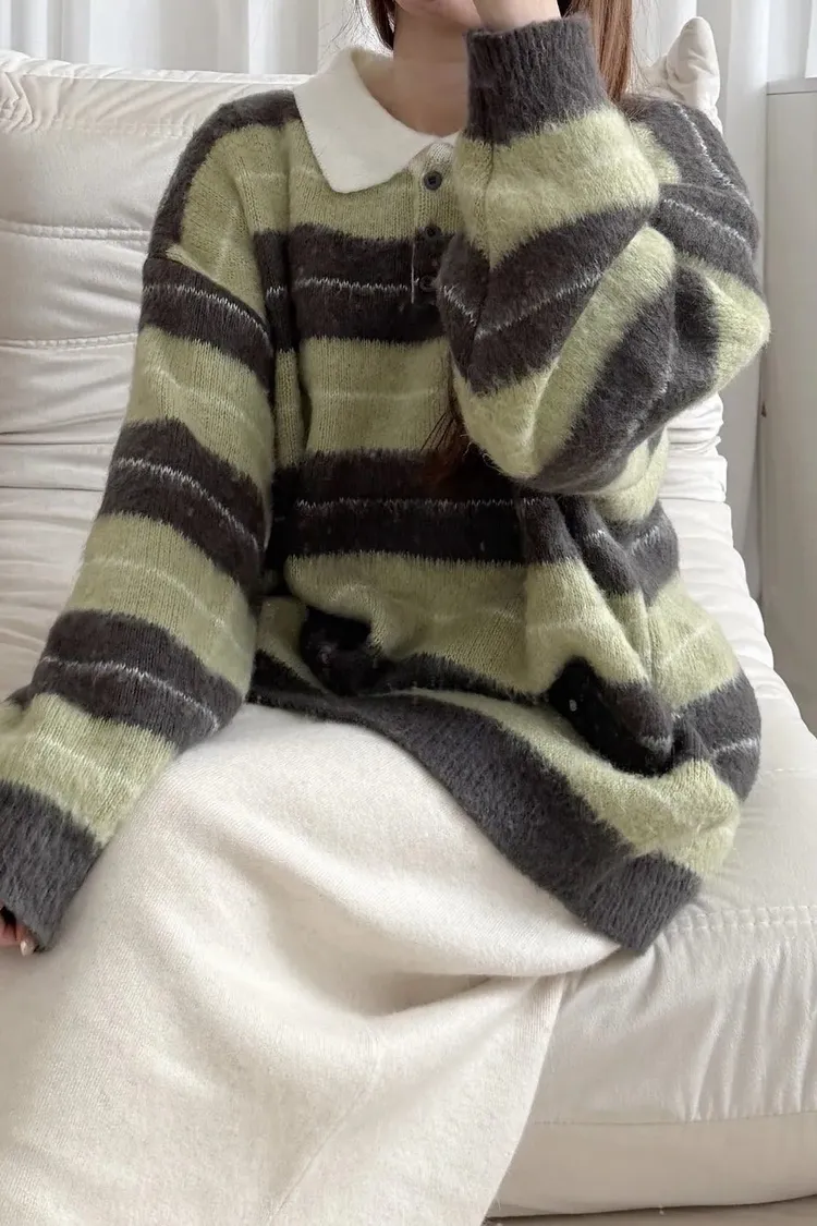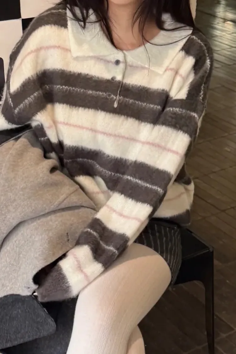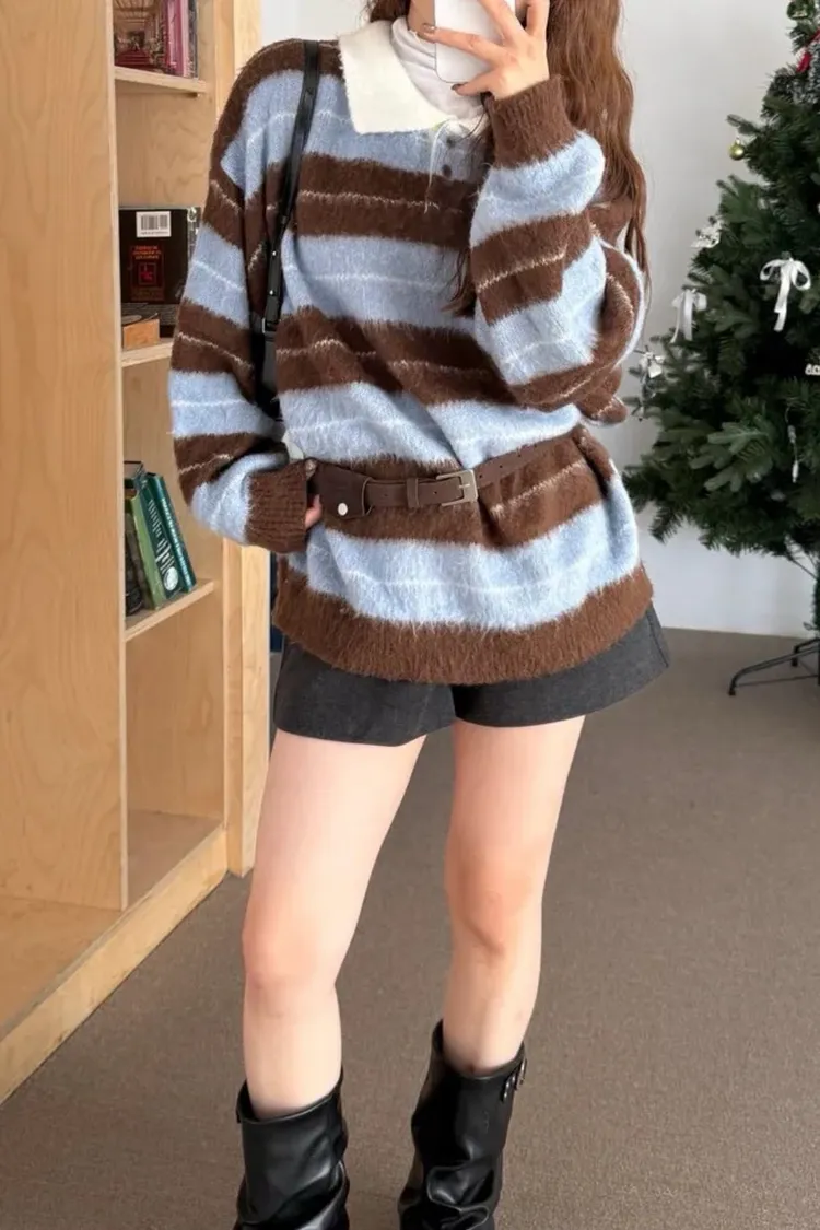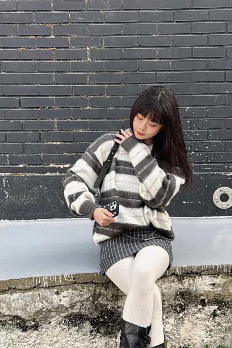 韓國賣爆的超柔毛毛條紋上衣