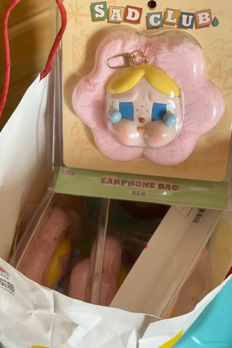 《POP MART CRYBABY悲傷俱樂部》哭娃花朵毛絨耳機零錢掛飾包